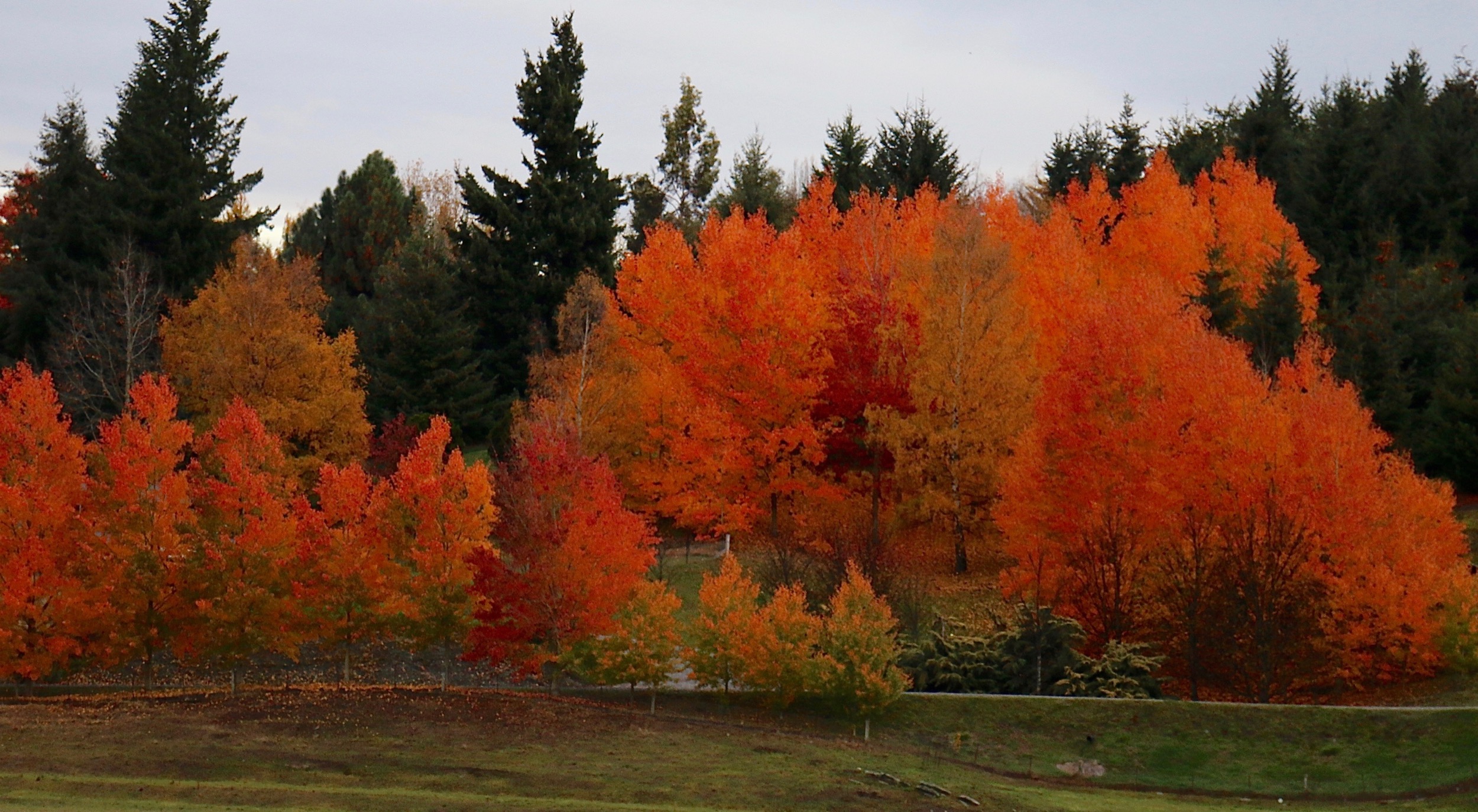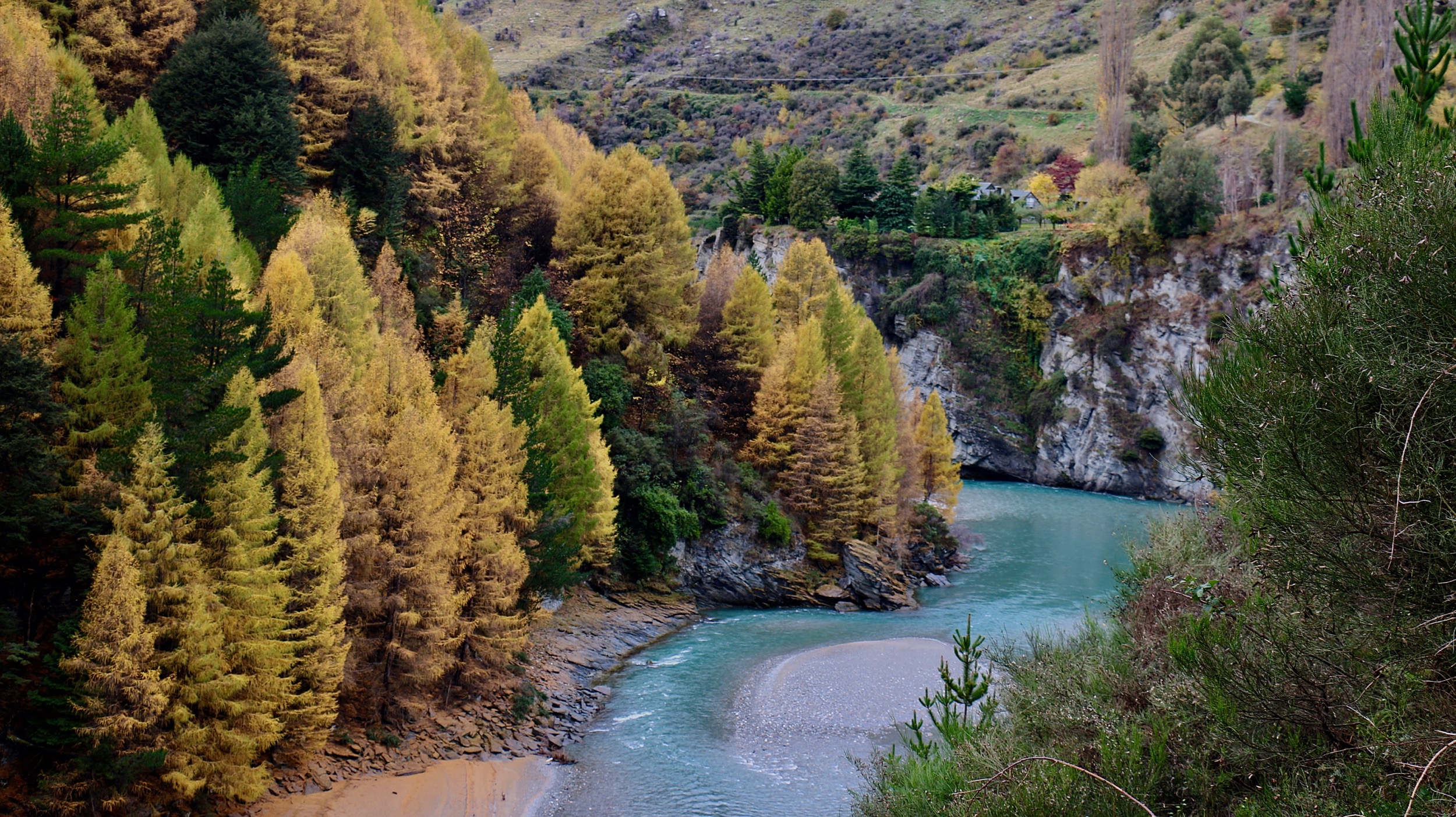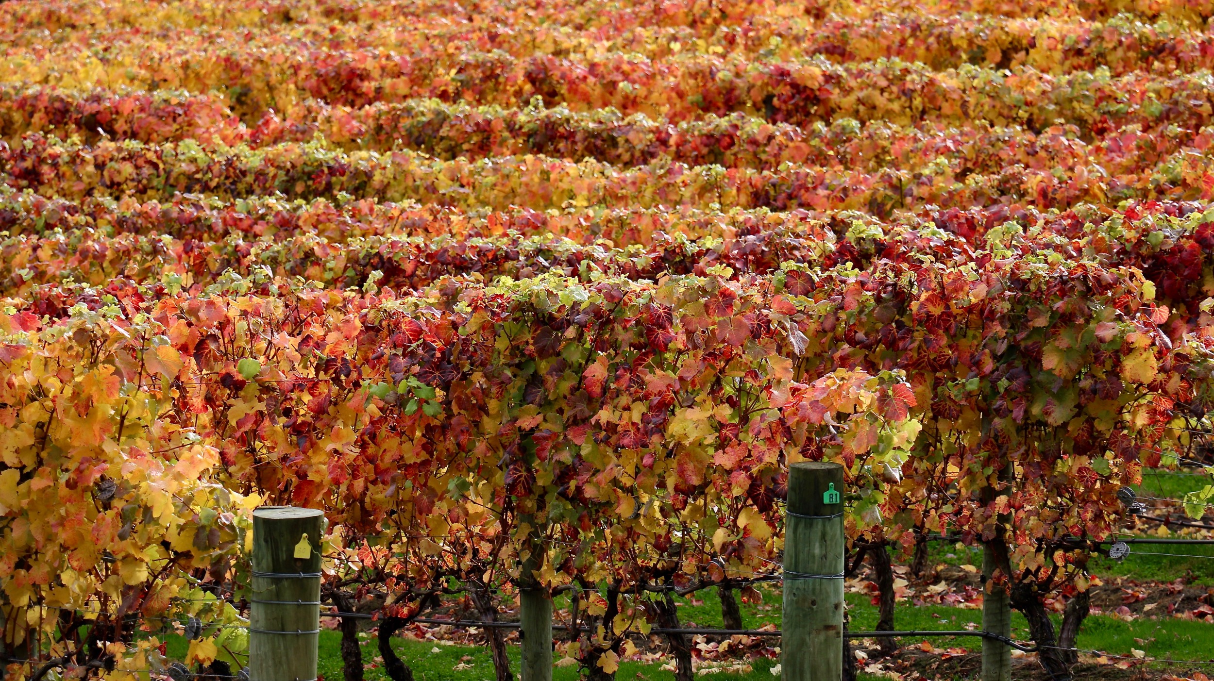 Ar puro e vida natural. Abaixo uma vinícola no outono, South Island.